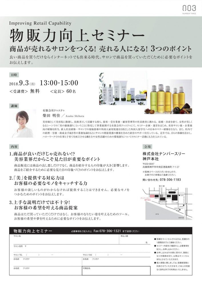 《セミナー》 物販力向上セミナー 申込み受付中です。