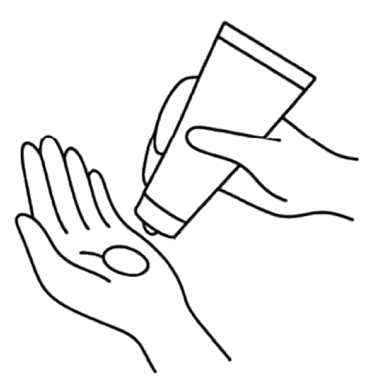 クリームを適量(小豆粒大~真珠粒大)取り出し手のひら全体に広げるように塗布。