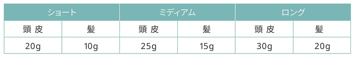 1. 頭皮全体に適量塗布し、余りはそのまま髪へなじませてください。